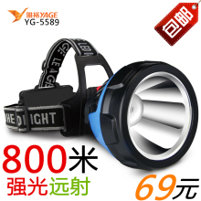 雅格强光头灯LED超亮远射充电夜钓鱼户外照明白光矿灯头戴手电筒