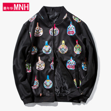 秋装新款休闲外套男 个性京剧面具潮流圆领修身青年夹克上衣