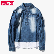 春夏季牛仔衬衫男修身长袖打底衫青少年韩版薄款学生衬衣外套