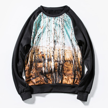 曼年华015秋冬新款男装植物印花套头卫衣潮男韩版修身圆领长袖男