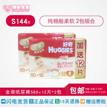 好奇金装婴儿纸尿裤尿不湿S60+12片*2包组合小号144片 全国包邮