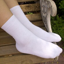欧蒂爱91%竹浆纤维女士袜子纯色夏季超薄柔软舒适白色女袜