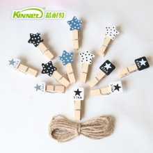 精耐持 可爱卡通小木夹子照相片彩色木质夹子套装带麻绳子照