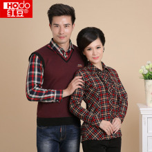 冬季新款红豆长袖纯棉保暖衬衣加厚加绒男女格子磨毛休闲衬衫