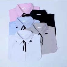 包邮春夏复古蝴蝶结细条纹假衬衣潮女式半身衬衫立领假领头