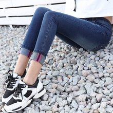 2017春季韩国卷边牛仔裤女高腰显瘦弹力九分裤翻边小直筒裤潮