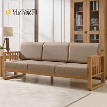 纯实木沙发白橡木三人布艺沙发小户型组合可拆洗日式简约客厅家具