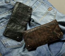 帅气 水洗做旧 羊皮 个性钉扣款 长款 钱包 卡包 款号5001