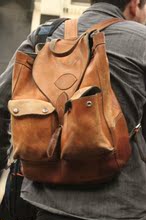 男款牛皮双肩包简约款欧美复古范潮款多兜旅行包--15056款
