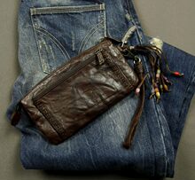 街头 潮货 民族风 彩色流苏 头层水洗牛皮 长款 钱包 手包 5012