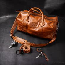 情侣真牛皮欧美范商务包户外单肩斜跨包--HJZ大号双色旅行包4004A