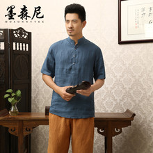 墨森尼 男士亚麻T恤衫短袖薄款透气舒适上衣大码男装