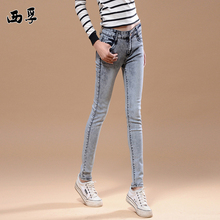 西孚韩版2016新款秋装牛仔裤女修身显瘦小脚裤中腰弹力铅笔长裤女