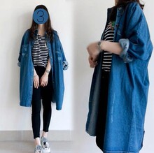 2016春装新款大码牛仔风衣宽松显瘦大码女装中长款休闲牛仔外套女