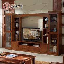 实木电视柜组合 橡木墙柜 现代中式客厅电视柜 背景墙厅柜酒柜