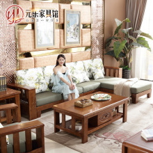 全实木沙发组合 小户型贵妃转角布艺沙发 橡木中式客厅家具包邮
