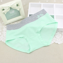 有机纯棉女士内裤中腰腰少女小平角内裤可爱猫咪三角裤