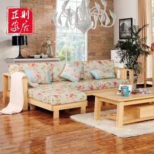 全实木松木转角沙发家具 客厅沙发组合简约田园布艺原木沙发组合