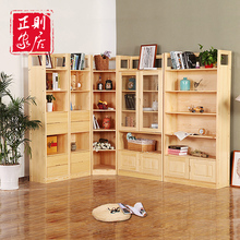 全实木书柜书架自由组合 松木转角书柜子双门带玻璃简约田园书橱