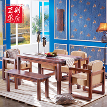 实木餐桌椅组合6人松木饭桌 小户型长方形桌现代中式餐厅一桌四椅