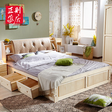 实木床松木简约软靠双人床 1.5/1.8米软包现代婚床高箱储物家具床