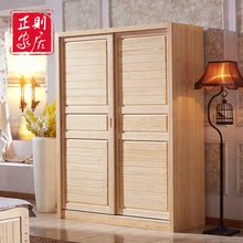 全实木衣柜推拉门松木组合大衣橱 板式2门移门储物柜卧室原木家具
