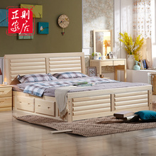 全实木床松木床储物床1.5/1.8米双人床 高箱床中式卧室家具床婚床