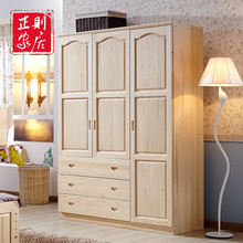全实木衣柜成人儿童松木大衣橱顶柜 二三门带抽简易组装卧室家具