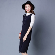 2017春装新款纯色中长款流苏开叉针织连衣裙韩版宽松无袖背心裙潮