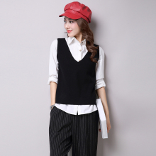 2017春夏季新款修身纯色V领针织薄款马甲 时尚搭肩无袖打底衫背心