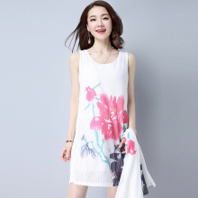 2017夏季新款女装韩版中长款印花连衣裙女士修身雪纺背心裙