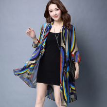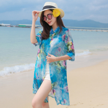 2017夏季新款雪纺薄外套女中长款防晒衣沙滩海边披肩休闲度假长衫