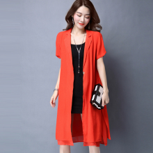 夏天雪纺长衫外套女中长款开衫外搭短袖披风外披衣防晒披肩