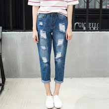 2017韩版宽松破洞牛仔裤女哈伦九分韩国大码9分bf风