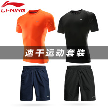 李宁运动套装男夏季短袖透气速干衣服吸汗T恤健身套装运动短裤男