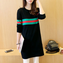 秋装新款韩版女装条纹撞色毛衣秋季套头中长款针织衫长袖打底衫