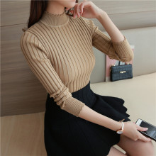 秋冬女装内搭加厚毛衣纯色花边半高领套头针织衫修身长袖打底衫女