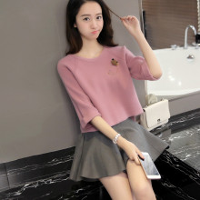 秋装新款韩版秋季女装圆领套头针织衫短款毛衣外套长袖打底衫
