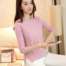 2016韩版秋冬新款女装螺纹针织衫长袖套头打底衫厚毛衣女