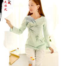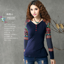 包邮2016秋装新款打底衫复古民族风刺绣花长袖t恤中国风大码女装