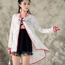 2016春新款民族风宽松大码白色防晒衫衬衣中长款衬衫女开衫披肩