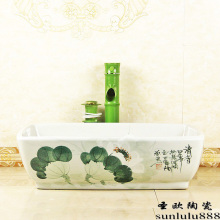 爆款 景德镇陶瓷洗脸盆洗面盆台上盆台盆洗手盆艺术盆 方形荷花鱼