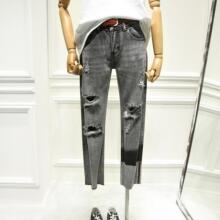 SUSU 春装新款 时尚灰色破洞直筒裤牛仔裤 九分裤女
