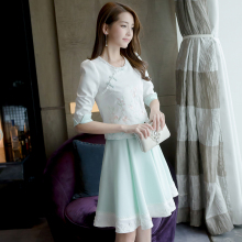 ATAR旗袍两件套装2017春夏新款女装盘扣白色上衣修身显瘦小清新裙