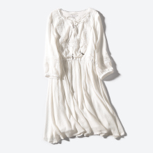 C1902夏季新款女装2017甜美学院风半开领镂空系带松紧腰连衣裙.37