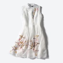 C1891夏季新款女装2017时尚韩版立领无袖梅花刺绣拉链连衣裙0.21