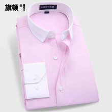 旗顿春季白衬衫男长袖修身商务正装职业衬衣白色工装寸衫伴郎免烫