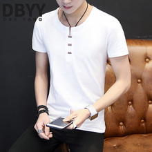 夏天半袖男夏季t恤男短袖V领纯棉简约白色体恤潮流青少年学生上衣