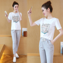 时尚套装女夏季2017新款韩版夏装女装短袖九分裤气质休闲两件套潮
