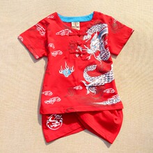 唐人堂2017儿童唐装男童中式纯棉夏装 宝宝T恤短袖短裤表演服